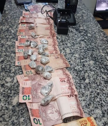 Com os conduzidos foram encontrados, dezessete papelotes de drogas, R$ 534,00 (quinhentos e trinte e quatro reais), várias porções de drogas diversas, dois tubos de linha, um relógio, uma televisão, cinco celulares, dois tabletes, um botijão, uma bicicleta, uma moto Brós e vários tubos de linha e plástico para embalagem da droga.