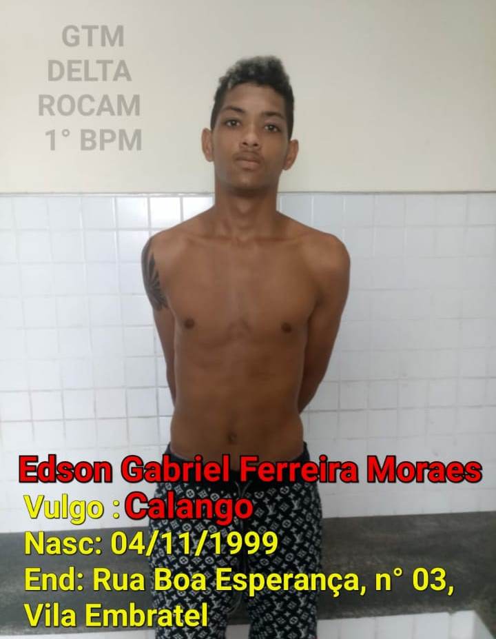 A equipe do Grupo Tático Móvel – GTM, Rocam Delta do 1º Batalhão de Polícia Militar, prendeu um homem identificado como Edson Gabriel Ferreira Moraes, conhecido como “Calango”.