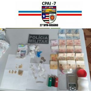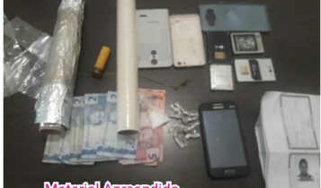 Após denúncias informando que no endereço indicado um homem identificado como Rogério e seu enteado Luís Paulo estavam comercializando drogas, as guarnições se dirigiram para o local onde encontram oito trouxas de substância semelhante à crack; um pé de maconha; quatro baterias de celulares; uma trouxa de substância semelhante à cocaína; um rolo de papel alumínio e um de papel filme; dinheiro e um cartucho calibre 20. Diante dos fatos os dois suspeitos foram conduzidos e apresentados na delegacia da região para serem autuados em flagrante.