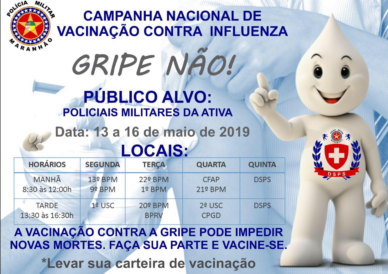 A Diretoria de Saúde e Promoção Social da PMMA, por meio da Divisão Médica, promoverá entre os dias 13 a 16 de maio a Campanha de Vacinação contra Influenza (gripe). Os locais e os horários disponíveis estão descritos no folder. Prevenção não tem idade, vacinem-se!. A influenza é uma infecção viral aguda que afeta o sistema respiratório. É de elevada transmissibilidade e distribuição global.