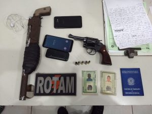 Policiais da ROTAM conduzem criminosos que assaltaram motorista de aplicativo
