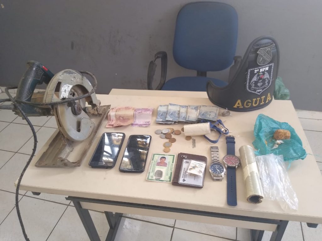 Em outra ação realizada no sábado (10) as equipes do Força Tática, Serviço de Inteligência e Esquadrão Águia desarticularam um ponto de venda de drogas e prenderam suspeitos de tráfico na região. Após monitoramento realizado pela equipe de inteligência do 2° BPM que informou as equipes de serviço sobre suposta boca de fumo em atividade no Bairro Baixinha, os policiais militares do Esquadrão Águia e Força Tática fizeram a apreensão de um caderno de anotação; dois rolos de papel filme; uma trouxa de substância semelhante à maconha; uma trouxa de substância semelhante à crack; uma máquina da Marca Bosh dentre outros objetos. Os dois suspeitos identificados como Mauricio Araújo Brito, 24 anos, e José Augusto Costa Do Nascimento, 22 anos foram presos e encaminhados ao 1°DP para as providências cabíveis.