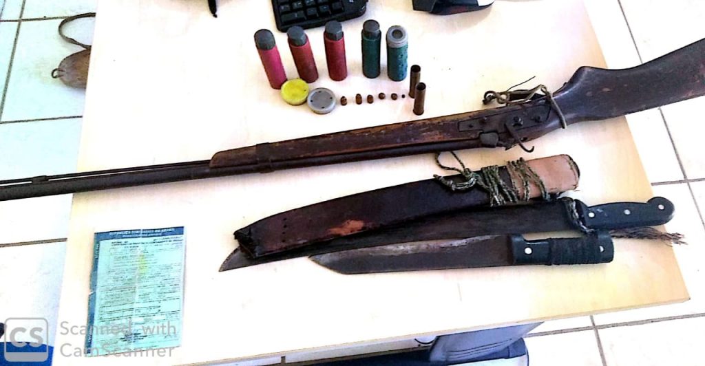 A prisão ocorreu quando a guarnição realizava rondas ostensivas no Km 05, nas proximidades da Ma-034, momento em que os policiais militares observaram um homem pilotando uma motocicleta em atitude suspeita. Diante da cena, a guarnição realizou a abordagem e durante a busca pessoal foi encontrado com o suspeito uma espingarda (bate-bucha), dois facões, dois estojos de munições calibre .32, cinco frascos plásticos contendo pólvora e três projéteis de calibres não identificados. O homem identificado como Francisco Vieira das Chagas recebeu voz de prisão e foi apresentado juntamente com o material apreendido com ele no 1° DP para providências cabíveis.