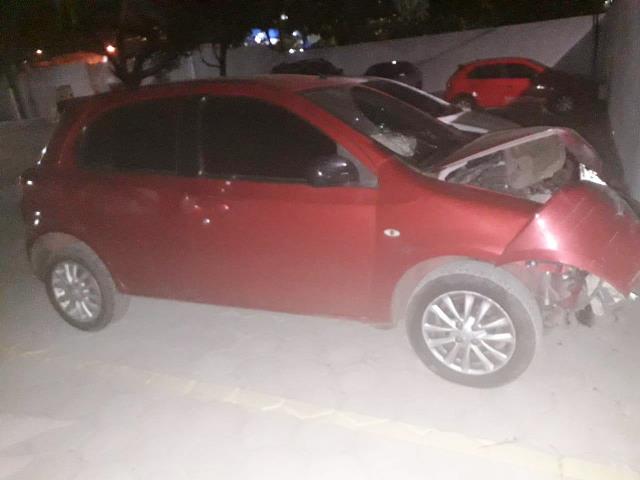 Em tentativa de fuga, homem colide veículo e é preso com arma de fogo