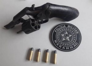 Na tarde de quinta-feira, 05, os policiais apreenderam uma arma de fogo com 4 (quatro) munições intactas que estaria dentro de uma mochila de um aluno no Colégio IEMA da cidade de Bacabeira, segundo os policiais eles foram acionados pela direção da escola.