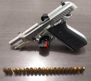Os policiais receberam uma denúncia anônima de que alguns homens estariam de posse de uma arma de fogo em um riacho próximo a uma estrada vicinal, os policiais fizeram a revista nos suspeitos e encontraram 01 (uma) pistola Taurus calibre 380, com 20 munições intactas do mesmo Calibre.