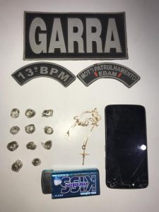 Em rondas ostensivas e preventivas pelo bairro Jardim Tropical II, a Equipe Garra bravo da 2° Companhia/13°BPM, avistou um indivíduo em atitude suspeita, que ao perceber a aproximação dos policiais tentou empreender fuga e dispersar o material ilícito, sem êxito.