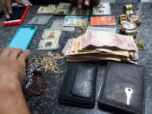 Diante da situação, a Força Tática, juntamente com apoio de outras equipes policiais, deram voz de prisão aos suspeitos, compostos por cinco homens e uma mulher. Todos foram conduzidos para a Delegacia de Polícia Civil, para as providencias cabíveis e esclarecimentos. No local, ainda foram apreendidos (4) veículos, (3) motocicletas e (1) carro, vários celulares, uma quantia de dinheiro, documentos pessoais, cartões, e (2) notebooks.