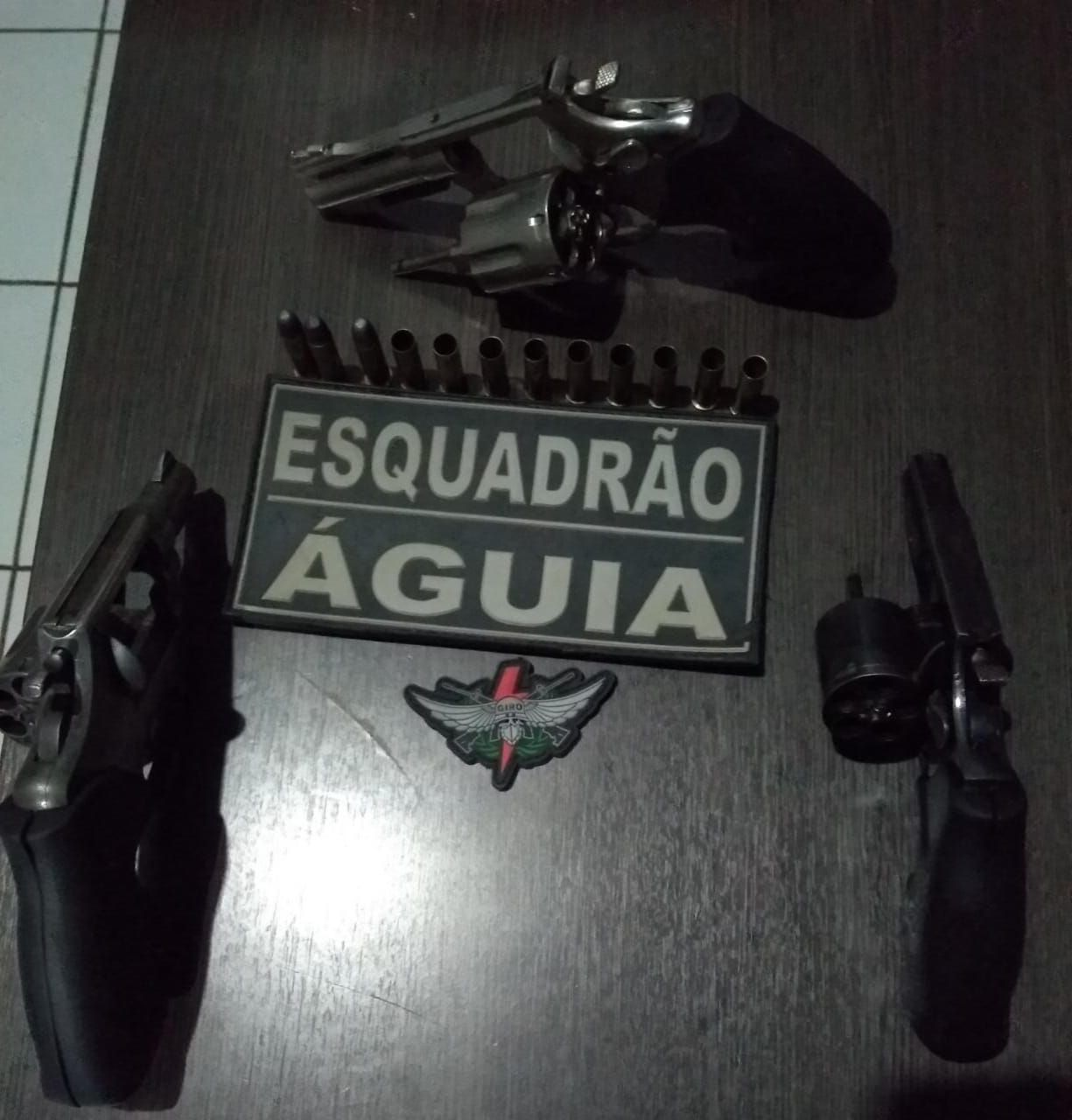 Após levantamento do serviço de inteligência do 4º BPM os policiais militares seguiram em diligências com as informações sobre os crimes. Durante buscas os militares identificaram e prenderam em flagrante três homens no exato momento que realizavam a negociação da moto roubada. Além destes os policiais apreenderam também 03 (três) revólveres calibre 38, 09 (nove) munições de calibre 38 deflagradas e 04 (quatro) munições de calibre 38 intactas.