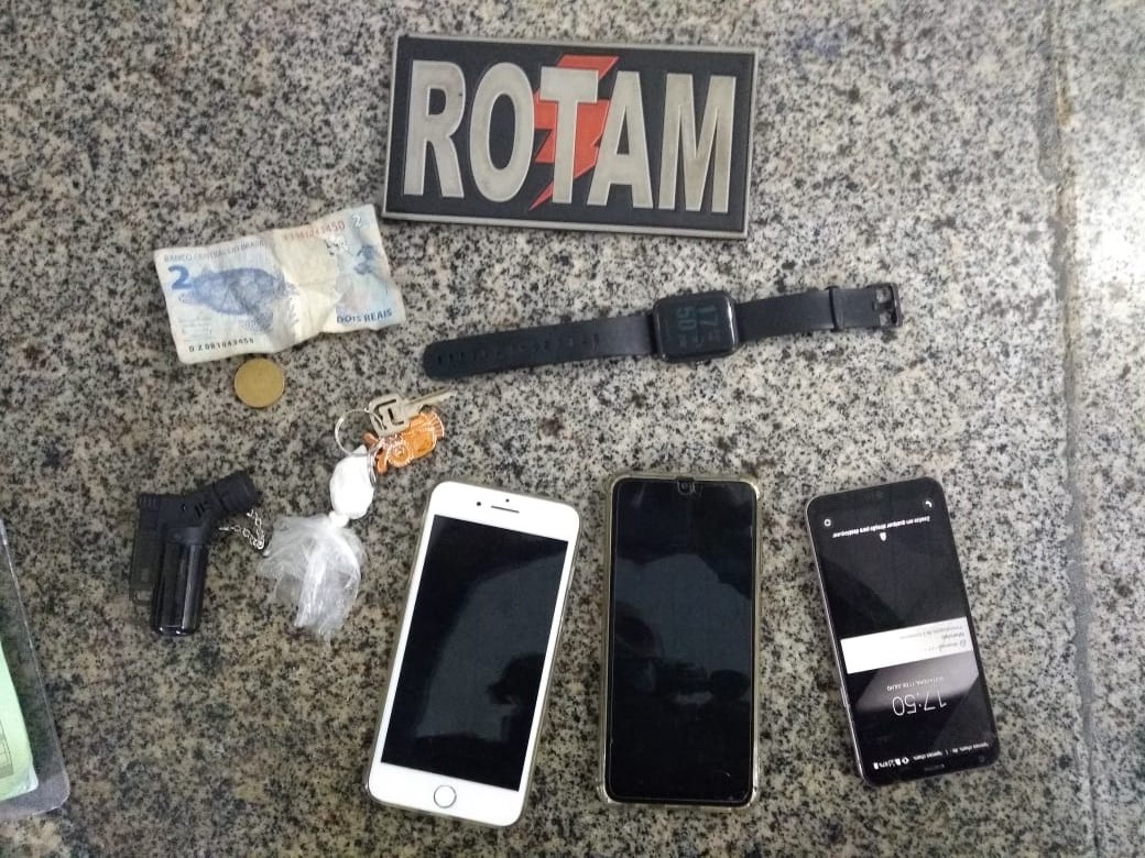 Com o conduzido foi apreendido Três celulares, R$ 2,25 (dois reais e vinte e cinco centavos), uma porção de uma substância semelhante à cocaína e um relógio de cor preta, posteriormente foi conduzido e apresentado no plantão de polícia civil do Cohatrac.