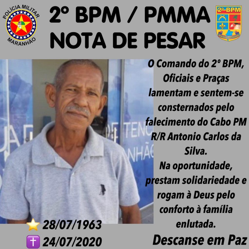 É com imenso pesar, que a Polícia Militar do Maranhão informa o falecimento na tarde desta sexta-feira (24), do cabo PM/RR Antonio Carlos da Silva, 57 anos.