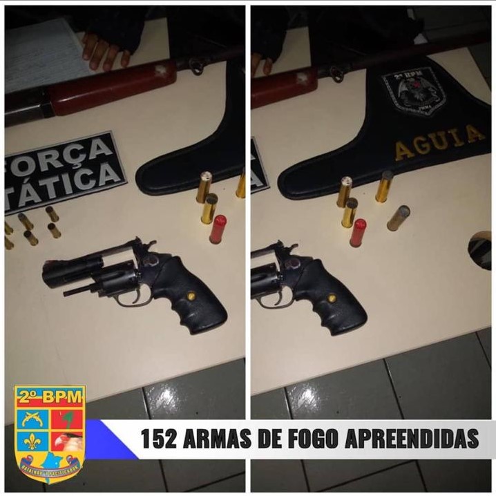 No ínterim, uma guarnição do Esquadrão Águia, ao realizar um acompanhamento Tático a um dos suspeitos de envolvimento na briga, instante em que o acusado dispensou uma arma de fogo tipo cartucheira devidamente municiada. De pronto, foi conduzido o suspeito, bem como as armas apreendidas e apresentadas na Delegacia de Polícia para os procedimentos previstos em Lei.