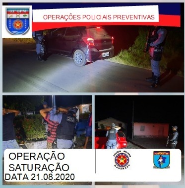 Seguindo diretrizes do Comando da Corporação em intensificar o policiamento nas unidades operacionais em toda sua área de atuação. O Tenente-Coronel Lenine Pontes, comandante do 31º BPM, sediado na cidade de Governador Nunes Freire, desencadeou na noite de sexta-feira (21), até na manhã de sábado (22), mais uma etapa da Operação Saturação.