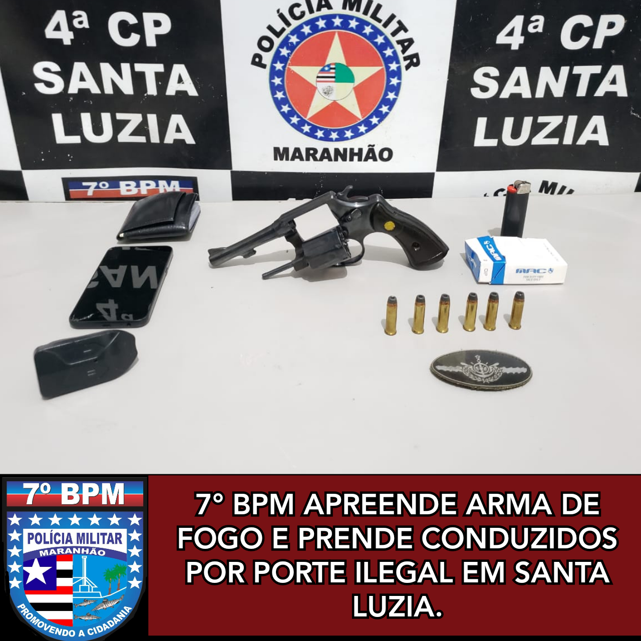 Nesta última quarta-feira (16), a equipe Policial Militar do 7º Batalhão apreendeu arma de fogo com seis munições intactas e prendeu dois homens no Centro de Santa Luzia – MA.