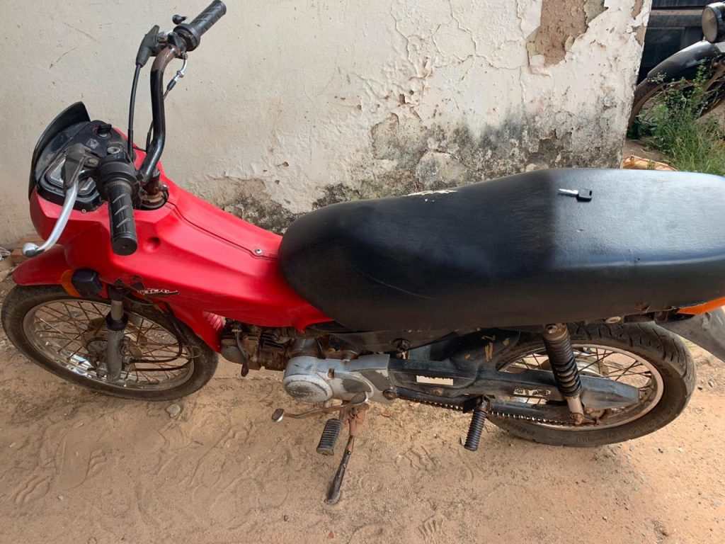 A guarnição de serviço recebeu a informações que uma Honda Pop vermelha que havia sido furtada a quatro dias atrás estaria escondida na residência de um suspeito no povoado São Raimunda. Que de imediato os policiais se deslocaram até o Povoado onde a vítima e o acusado residem. Ao chegar no local, foi encontrada na casa do suspeito o referido veículo sob sua custódia.