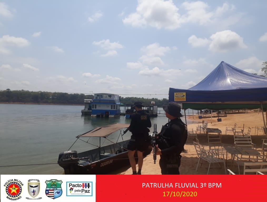 O Grupamento Fluvial do 3º BPM, sediado em Imperatriz-MA, composto por policiais militares do Grupo de Operações Especiais (GOE) tem intensificado, no mês de outubro, as ações preventivas contra condutas criminosas de “piratas” as margens do Rio Tocantins. Durante as operações realizadas na tarde deste sábado (17), foi realizado abordagens, buscas a embarcações, contato com frequentadores de pousadas, moradores das margens da ilha com o intuito de coibir eventuais atos de criminalidade e asseverar a segurança da população.