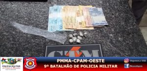 Policiais militares do Grupo Tático Móvel Delta ll do 9° BPM, sediado em São Luís-MA, realizavam rondas, na noite de sábado (24), pelo Bairro do João Paulo e ao chegar na Rua da Felicidade prendeu dois indivíduos em atitude suspeita, portando oito invólucros de uma substancia semelhante a maconha, R$ 537,00 em espécie e um celular.
