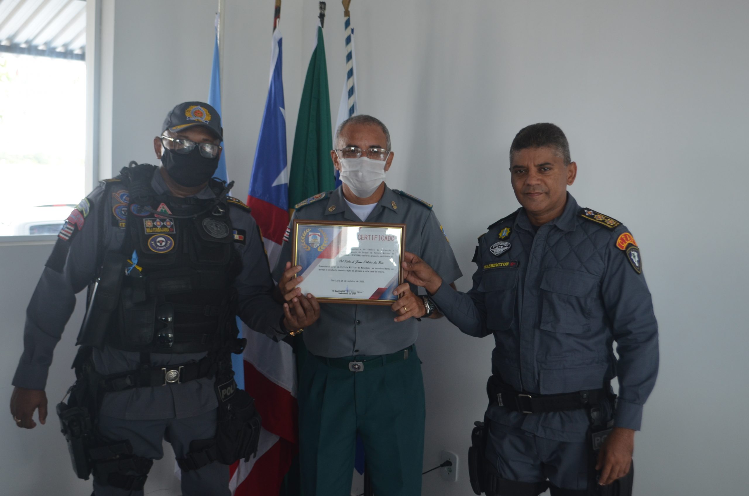 O evento aconteceu na segunda-feira, 26, no Centro de Formação e Aperfeiçoamento de Praças – CFAP e contou com a presença do Secretário de Segurança Pública, Jefferson Portela, do Comandante Geral da PM, coronel Pedro Ribeiro, Subcomandante Geral, coronel Nilson Marques, o Subchefe do EMG, coronel Luís Alfredo, o comandante do Comando do Policiamento Metropolitano, coronel Aritanã Lisboa.