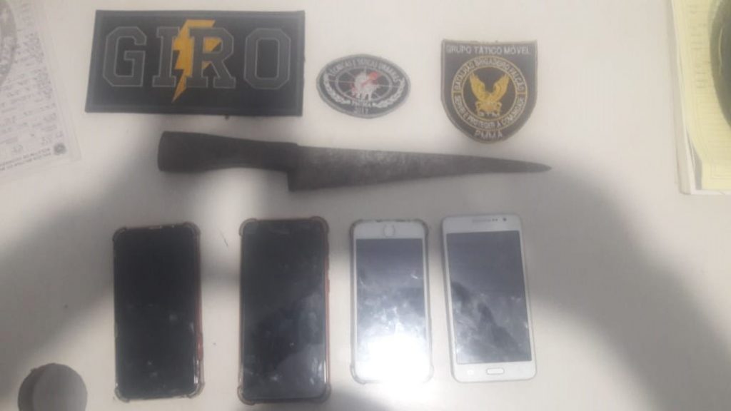 Posteriormente os policiais militares conseguiram prender os suspeitos e todos os pertences foram recuperados e uma faca apreendida.
