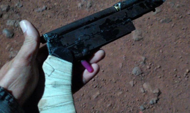 A equipe de motopatrulhamento fazendo rondas se deparou com os homens em atitude suspeita, foi feita a busca pessoal onde foi encontrada com um dos suspeitos uma arma de fabricação caseira tipo garrucha e dois cordões, os autores informaram que tentaram atirar contra um desafeto.