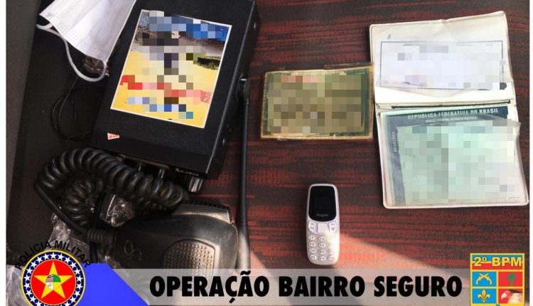 Os policiais realizaram a revista pessoal e ao interior do veículo e encontraram uma Pistola Taurus, calibre. 380, numeração PT KUC 30300, com um carregador e catorze munições intactas, um rádio HT Baofeng e um rádio transmissor cobra.