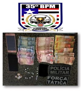 Na tarde do dia 24 (terça), a Equipe do Serviço de Inteligência do 35º BPM, localizado em São João dos Patos , fazia levantamento sobre tráfico de drogas na região de Paraibano-MA, e chegou a um imóvel na Rua Faustino de Sousa, no bairro Residencial, onde com a autorização da proprietária os policiais militares adentraram e encontraram 37 papelotes de substância análoga a maconha, 38 trouxas de substância análoga a Crack, 325,00 em espécie dentro do guarda-roupas.