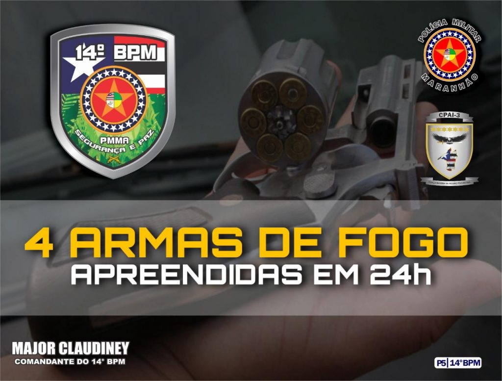 Segundo o comandante do 14º BPM, major Claudiney, em menos de 24 horas a PM apreendeu quatro armas de fogo na área de atuação da Unidade, totalizando 157 armas de fogo apreendidas pelo 14º Batalhão no ano de 2020.