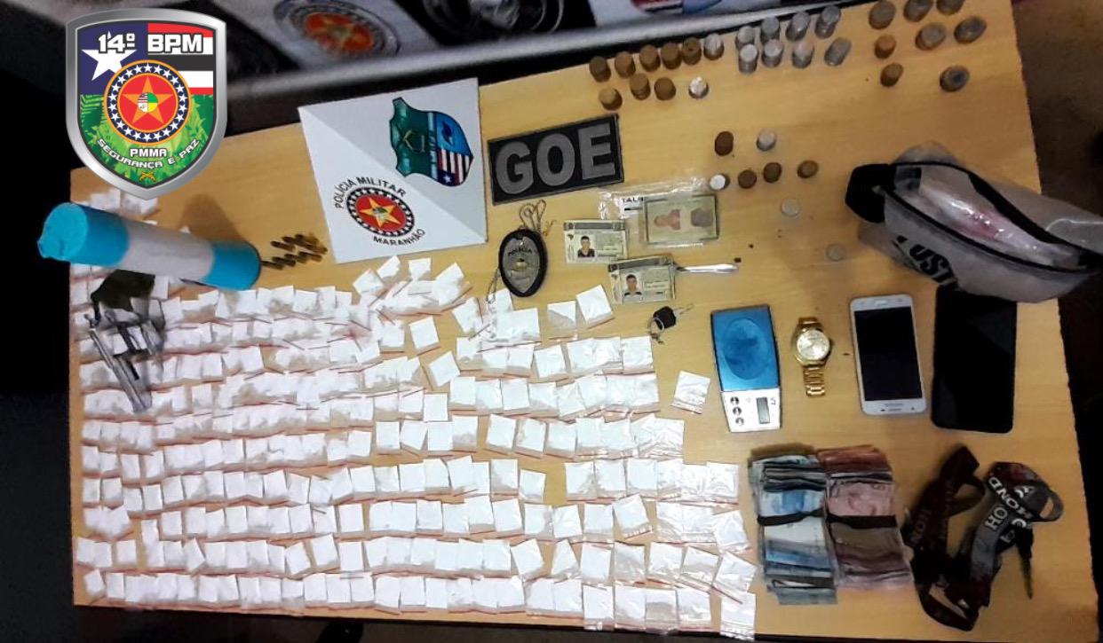 Policiais Militares do Grupo de Operações Especiais (GOE) e do Serviço de Inteligência do 14º BPM, desencadearam operação no início da madrugada deste domingo (6), que culminou com a prisão de um homem pelos crimes de tráfico de drogas e porte ilegal de arma de fogo.