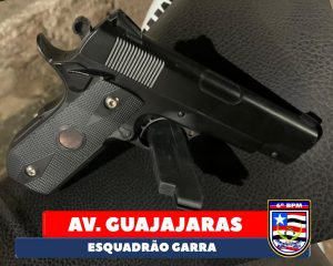 Quando em rondas noturnas pela Avenida Guajajaras na segunda-feira (07), o grupamento Garra do 6º BPM abordou dois indivíduos em uma motocicleta POP 100, de cor preta. Durante a busca pessoal foi encontrado um simulacro de arma de fogo, tipo pistola. Os indivíduos foram conduzidos e apresentados, sem lesões corporais no Plantão Central da Cidade Operária, onde foi lavrado um TCO em desfavor dos conduzidos.