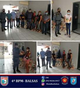 A Polícia Militar do Maranhão (PMMA), através do 4º BPM, sediado em Balsas/MA, distribuiu na manhã de quarta-feira (23) cestas básicas às famílias dos alunos do Pelotão Mirim. As cestas básicas foram disponibilizadas pela Associação de Produtores de Soja em Balsas (APROSOJA) por meio de parceira com a PMMA, em decorrência de um contato do comandante do 4º BPM, major Gilberto, com o presidente da Associação, que se sensibilizou com o Pelotão Mirim e num gesto humanitário doou várias cestas básicas.