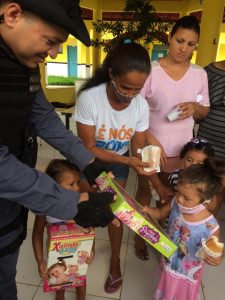 A Polícia Militar por meio do 32º Batalhão, sediado em Cidelândia, realizou na manhã desta quarta-feira (23) ação social com a distribuição de cem cestas básicas e quatrocentos brinquedos. O evento se deu nos povoados São Domingos, Ciriaco e Viração, os quais se configuram como localidades de população carente e pertencem à área da 1° Cia do 32° BPM em Cidelândia.