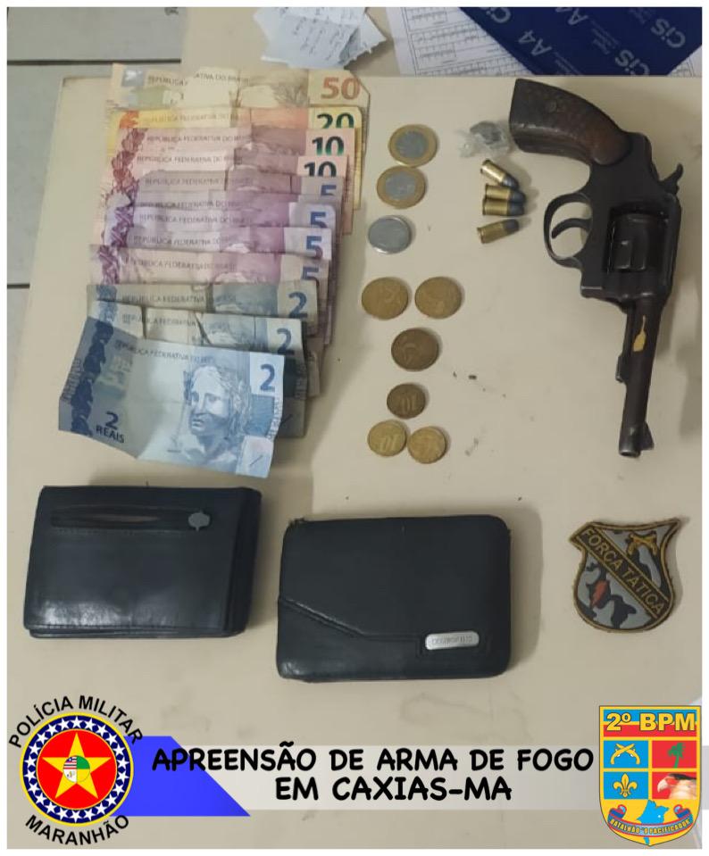 Os indivíduos e a arma de fogo foram apresentados na Delegacia de Polícia Civil de Caxias para as providências cabíveis.