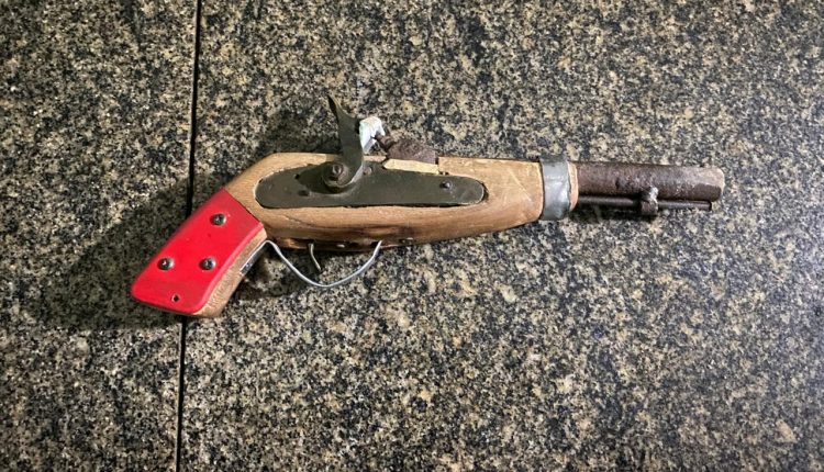Na madrugada de sexta-feira (01), por volta das 03h, a guarnição de serviço recebeu a denúncia que estava havendo uma festa no Povoado Enseada dos Bezerros. De imediato a guarnição se deslocou ao local e constatou que de fato estava acontecendo uma festa, sem a devida licença. Ao chegar no local os policiais avistaram um indivíduo dispersando um objeto, foi realizado busca pessoal no suspeito, e o objeto que ele havia dispersado, se tratava de uma arma de fogo de fabricação caseira do tipo garrucha.