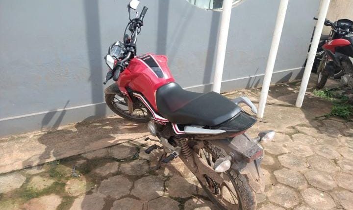 De posse das informações a guarnição iniciou incursões pela cidade, momento em que avistou abandonada em uma área de matagal no povoado Jaquarequara a motocicleta produto de roubo.