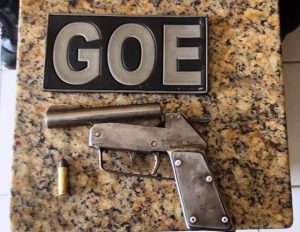 Por volta das 10 horas, os policiais do Grupo de Operações Especiais (GOE) realizavam incursões na Rua Saturnino Belo, no bairro Baixinha, e ao abordarem dois homens encontraram uma arma de fogo artesanal com uma munição calibre .38.