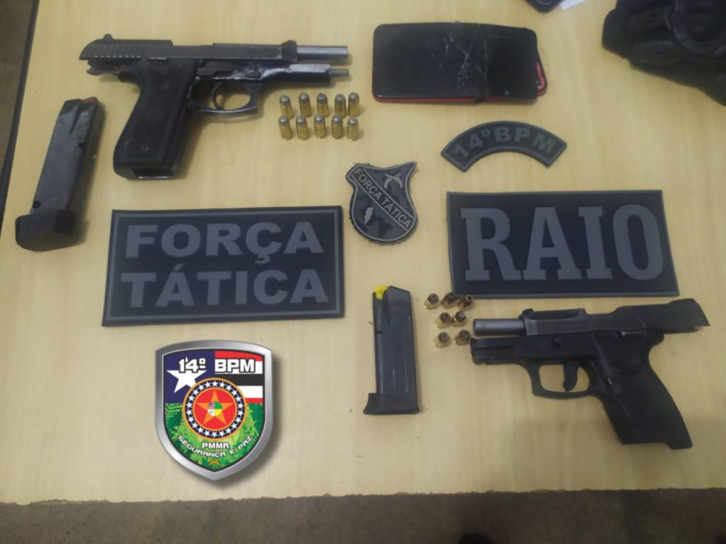 Os suspeitos foram presos com uma PT 100 de calibre. 40, com um carregador e 10 munições e a outra uma PT modelo G2C, calibre 9 mm, com sete munições intactas. Além das armas, uma motocicleta de placa NXM 2D05, O homem alvejado foi socorrido pela Força Tática e encaminhado para Hospital Municipal de Imperatriz.