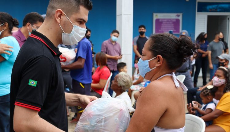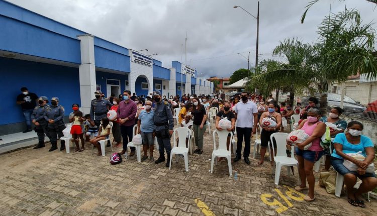 Durante a ação, foram distribuídos aproximadamente 700 kilos de alimentos e cerca de 70 famílias foram beneficiadas.