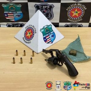 Uma arma de fogo e substância semelhante à maconha foram apreendidos por policiais do 3º BPM, na noite de segunda-feira (05), em Imperatriz.