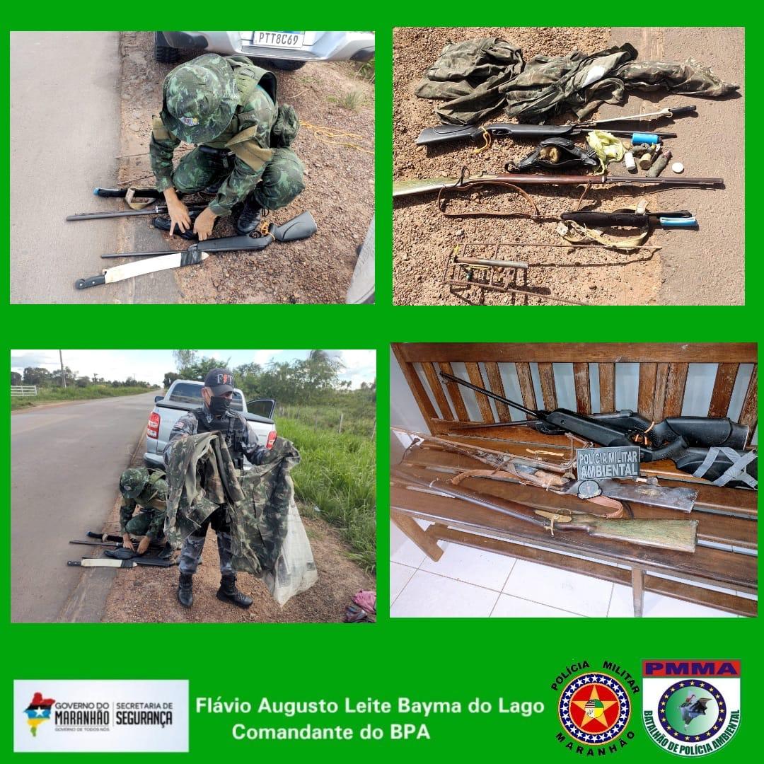 Quatro armas de fogo foram apreendidas por policiais do Batalhão de Polícia Ambiental – BPA na segunda-feira (5), na BR-135, em Bom Jardim.