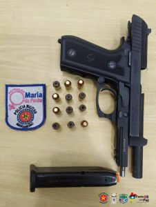 Na manhã de sábado (11), a equipe da viatura Maria da Penha, pertencentes ao 3º BPM, realizava rondas pelo bairro Bom Sucesso, em Imperatriz-MA, e ao passar pela rua Petrônio Portela foi informada por populares que havia um homem armado com uma arma de fogo, rondando a área. Os policiais localizaram o suspeito e durante a abordagem foi encontrada uma pistola Taurus calibre .40, com 12 munições intactas. O suspeito foi apresentado no Plantão Central da Delegacia Regional de Imperatriz, juntamente com o material apreendido.