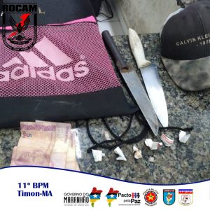 Em outra ação, militares da ROCAM, também do 11°BPM, em rondas no bairro Formosa, visualizaram 02 (dois) indivíduos em atitude suspeita e imediatamente decidiram abordar. Foi encontrado no bolso de um dos suspeitos 02(dois) papelotes de substância semelhante a crack e na cintura 01(uma) faca, com o outro suspeito foi encontrado 04(quatro) papelotes de substância semelhante a crack e 01(uma) faca. Diante dos fatos, os 02(dois) foram conduzidos pra Central de Flagrantes de Timon.