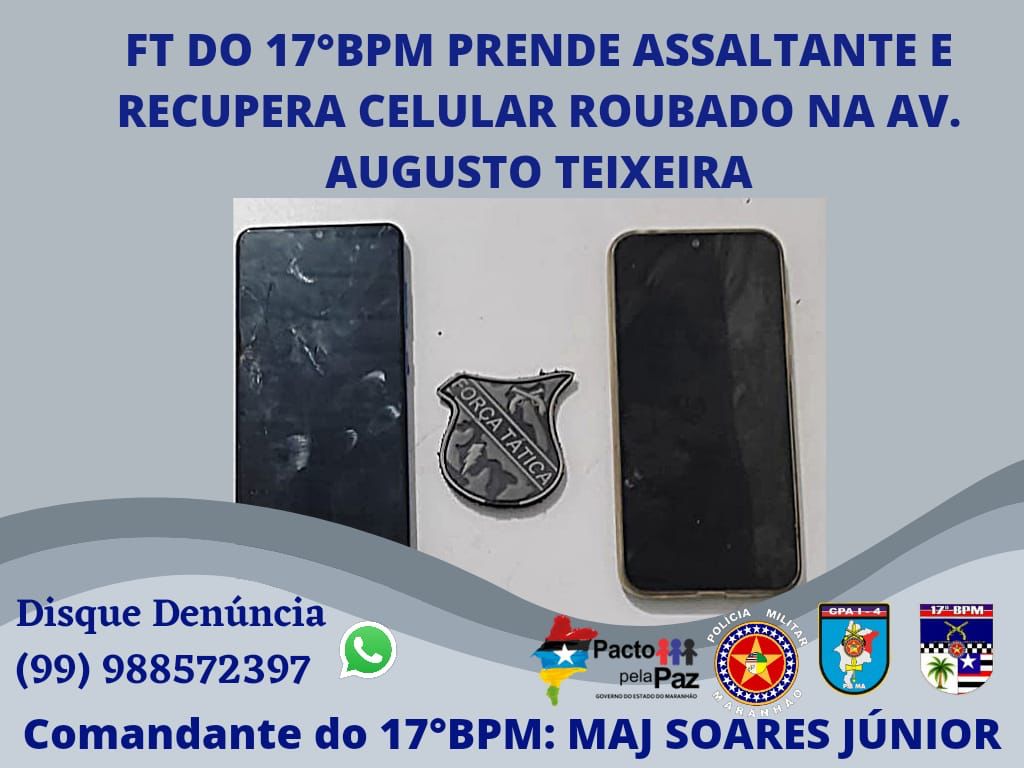 O fato ocorreu por volta das 03h de ontem (16), a viatura da Força Tática do 17º Batalhão da PM realizava rondas nas imediações da Avenida Augusto Teixeira, localizada no Bairro São Sebastião, em Codó, quando a vítima abordou os militares e informou que teve o celular roubado. O acusado tentou evadir-se mas foi capturado pela polícia militar, momentos após ter cometido o crime.