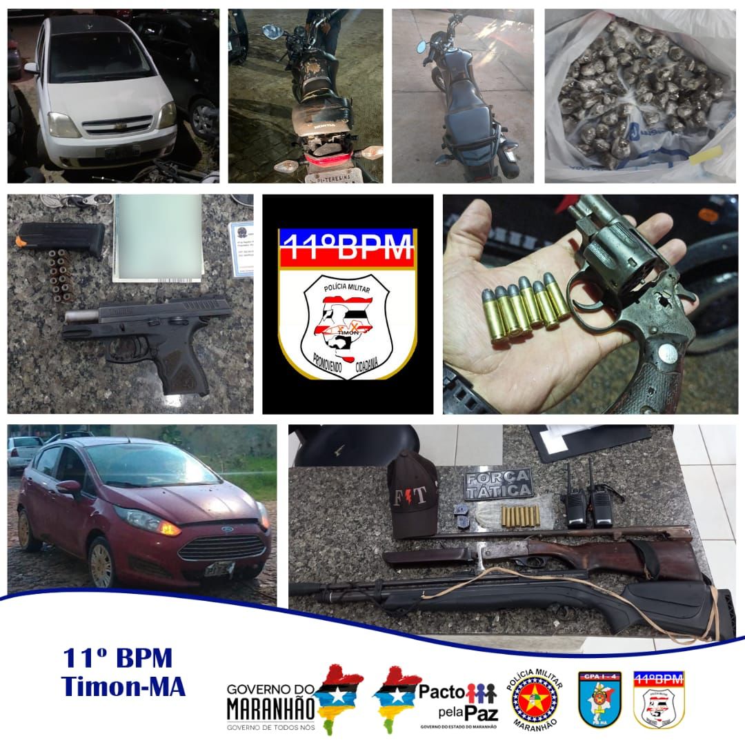 Neste final de semana, em Timon-MA, o 11º Batalhão da Polícia Militar deu continuidade as Operações “Bloqueio”, “Comandos Integrados”,“ Timon Seguro”, “ Visibilidade Comercial”’ e “Zona Rural, que culminoram na recuperação de veículos, apreensões de armas de fogo, prisão de criminosos e apreensão de drogas.