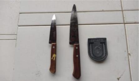 A guarnição policial seguiu imediatamente ao endereço informado pela vítima. Já no local, os pm’s foram surpreendidos pelo homem que estava com duas facas na mão e tentou agredir os militares.
