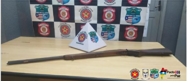 já na noite de segunda-feira (7), a guarnição do Bananal, na cidade de Governador Edson Lobão, em rondas pela estrada de acesso ao setor agrícola se deparou com duas pessoas em posse de uma espingarda, momento em que os dois perceberam a viatura eles empreenderam fuga pelo mato. Foi realizado busca para tentar localizar os indivíduos, porém foi localizado só a arma. O objeto foi apresentado a delegacia para as medidas cabíveis.
