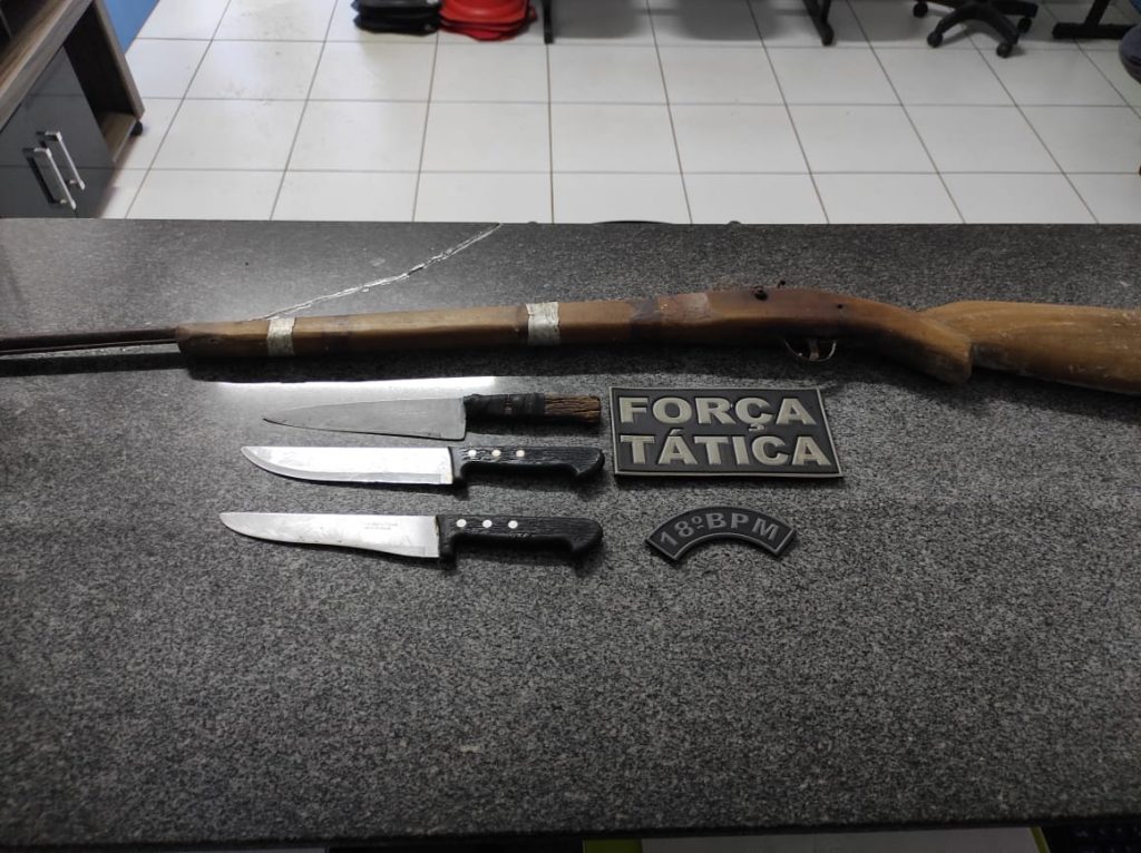 Na mesma noite na cidade de Presidente Dutra, policiais militares do 18º BPM apreenderam uma garrucha durante uma abordagem no Povoado Calumbi. A arma foi encontrada com um homem que estava ameaçando populares.