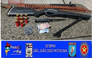 No final da tarde de segunda-feira (14), policiais militares do 35º Batalhão prenderam um homem por posse ilegal de arma e munições na cidade de Nova Iorque (MA). A ação aconteceu durante uma operação na cidade e resultou na apreensão de um rifle de pressão, munições e um punhal.