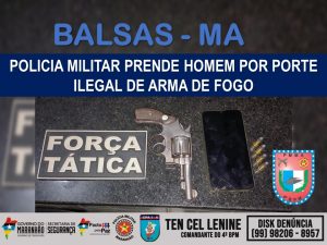 A equipe da Força Tática do 4º BPM, em Balsas-MA, recebeu informações de que havia um grupo de homens, possivelmente armados, rondando pela cidade. Diante dos fatos a Polícia Militar realizou diligências e avistou os suspeitos em um bar no bairro Catumbi. Durante a abordagem foi encontrado um revólver calibre 32 com quatro munições intactas. O homem foi encaminhado para a Delegacia de Polícia Civil, para as providências cabíveis.