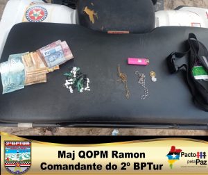 Durante a ronda matinal de sábado (09) pelo Atins-MA, a guarnição de serviço do 2º Batalhão de Turismo (2º BPTUR), em Barreirinhas-MA, abordou um homem e durante a busca pessoal encontrou 25 petecas de substância semelhante a Crack e R$557,00 em espécie. Diante dos fatos, o suspeito foi conduzido até a Delegacia de Polícia Civil de Barreirinhas, onde foi apresentado sem lesões corporais.
