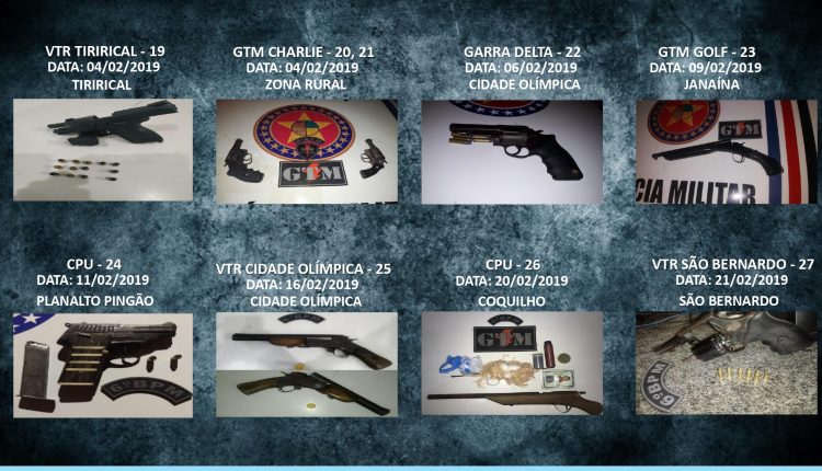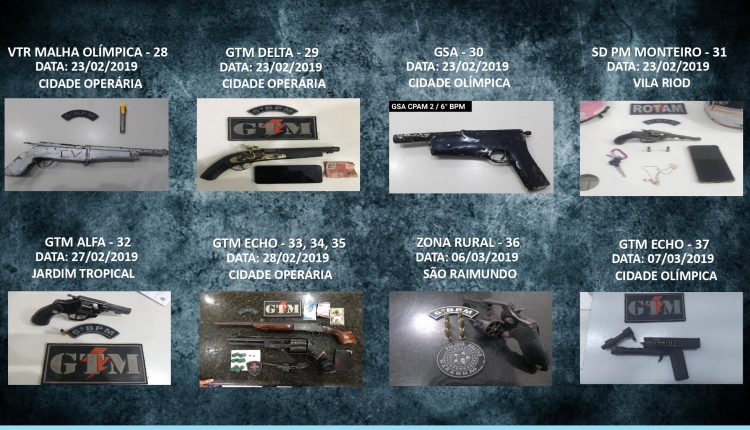 A última arma de fogo apreendida foi na Vila Geniparana dia 10 de março, um revólver calibre 38, de numeração 00485501, cinco munições, sendo uma deflagrada.